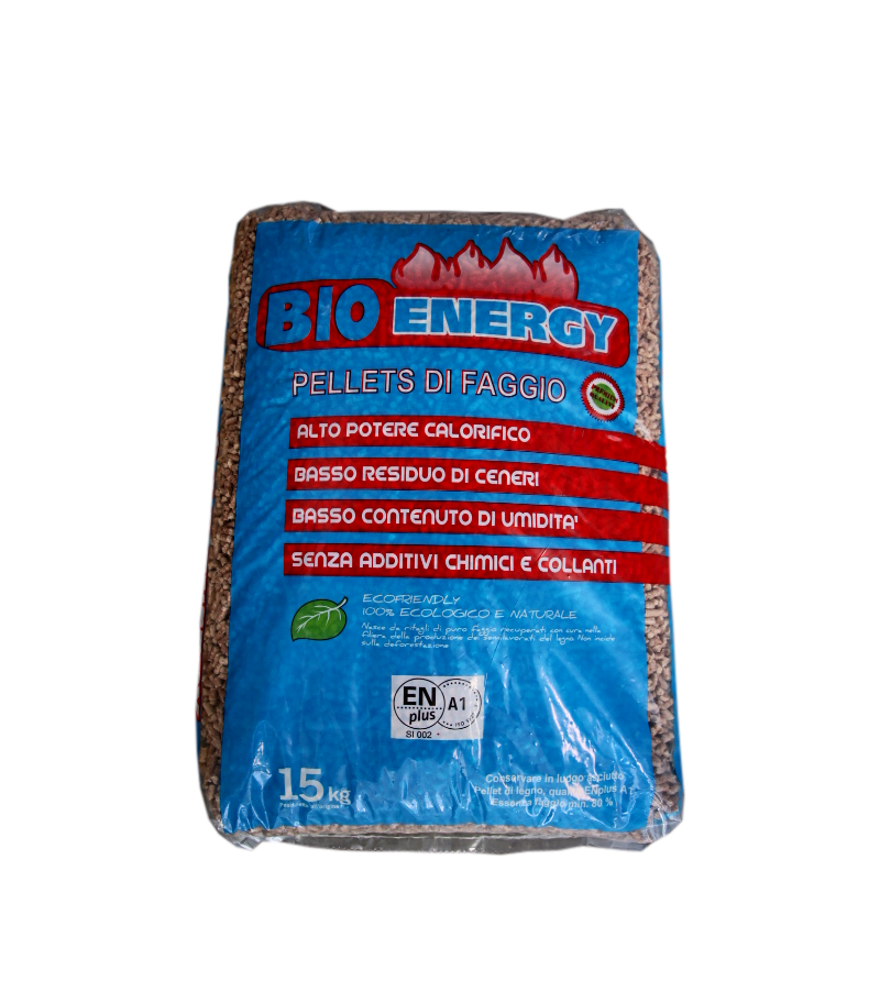 Il pellet Bio Energi si ottiene dalla triturazione di piccoli pezzi di puro legno di faggio che, per le loro dimensioni, non possono essere utilizzati nella produzione di altri prodotti lavorati. Questi pezzi vengono estratti dalla linea di produzione durante la fase di taglio e sagomatura dei semilavorati, quindi sono già scortecciati e non hanno subito alcun trattamento chimico. A questo legno duro, ideale per la combustione, viene aggiunta una quantità minima di segatura di abete, non superiore al 20%, come legante per garantire una durata ottimale del pellet. Questo impedisce ai cilindri di sbriciolarsi durante la movimentazione e mantiene le dimensioni ottimali per l’utilizzo nelle vostre stufe.Questa miscela bilanciata viene quindi portata al giusto livello di umidità e pressata mediante un semplice processo meccanico, senza l’aggiunta di collanti o additivi chimici. Impianti all’avanguardia garantiscono la qualità costante di ogni sacco acquistato. I pellet Bio Energy hanno un elevato potere calorifico e, quindi, una maggiore efficienza energetica. Uno dei principali vantaggi di questi pellet è che sono realizzati con segatura pulita e asciutta, senza corteccia. Ciò significa meno cenere, maggiore efficienza, volume ridotto e un rischio ridotto di malfunzionamenti della stufa.